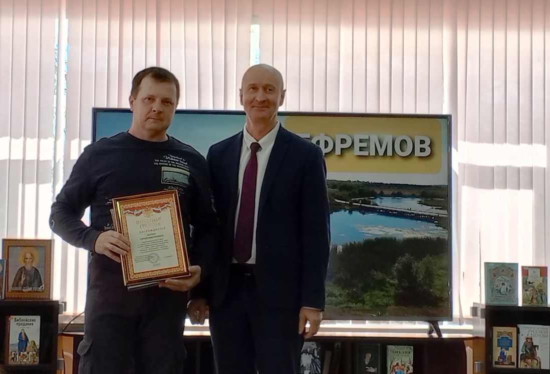 Большая группа ефремовцев в этот день была награждена Почетными грамотами главы администрации муниципального округа, а слесарю-ремонтнику ЦТП МУП «Агрокомслужба» Владимиру Говорову была вручена Почетная грамота Тульской областной Думы.