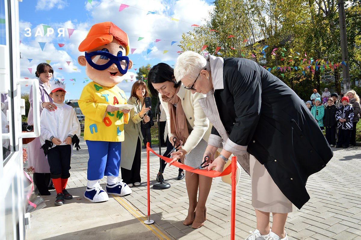 Традиционное разрезание красной ленточки, которое совершили Светлана Давыдова и Тамара Кузнецова, завершило торжественный митинг, и гостей пригласили внутрь, где Тамара Кузнецова провела для них экскурсию, познакомив с зонированием учреждения по возрастам и интересам, с новейшим оборудованием, в том числе для жителей с ограниченными возможностями здоровья.