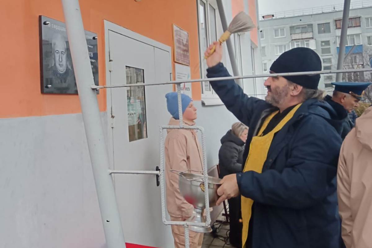 Настоятель храма святителя Луки Крымского иерей Виталий Хлустиков окропил святой водой памятную доску и обратился к учащимся: