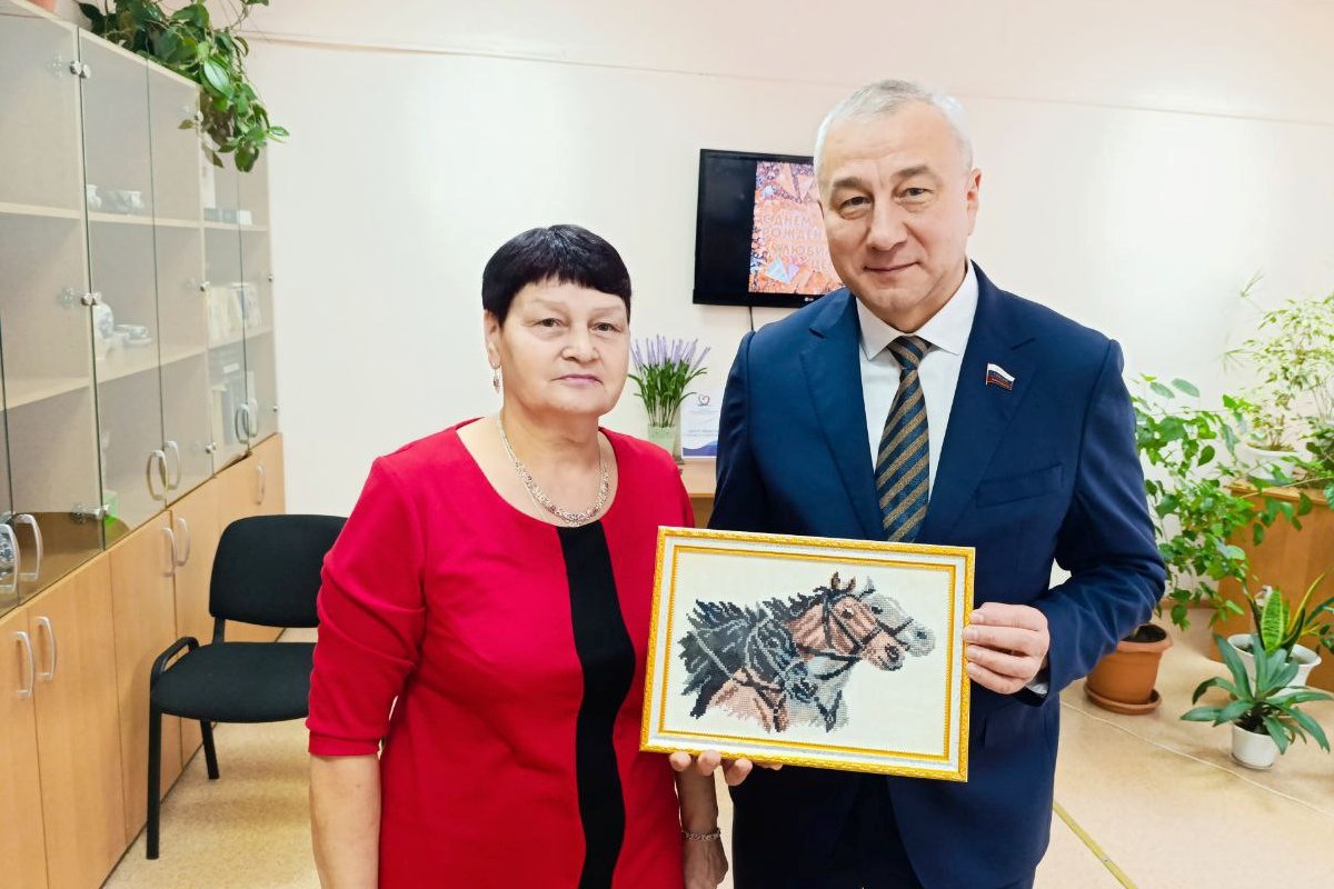 И сам депутат без подарка не остался: рукодельницы преподнесли ему вышивку – тройку лошадей.